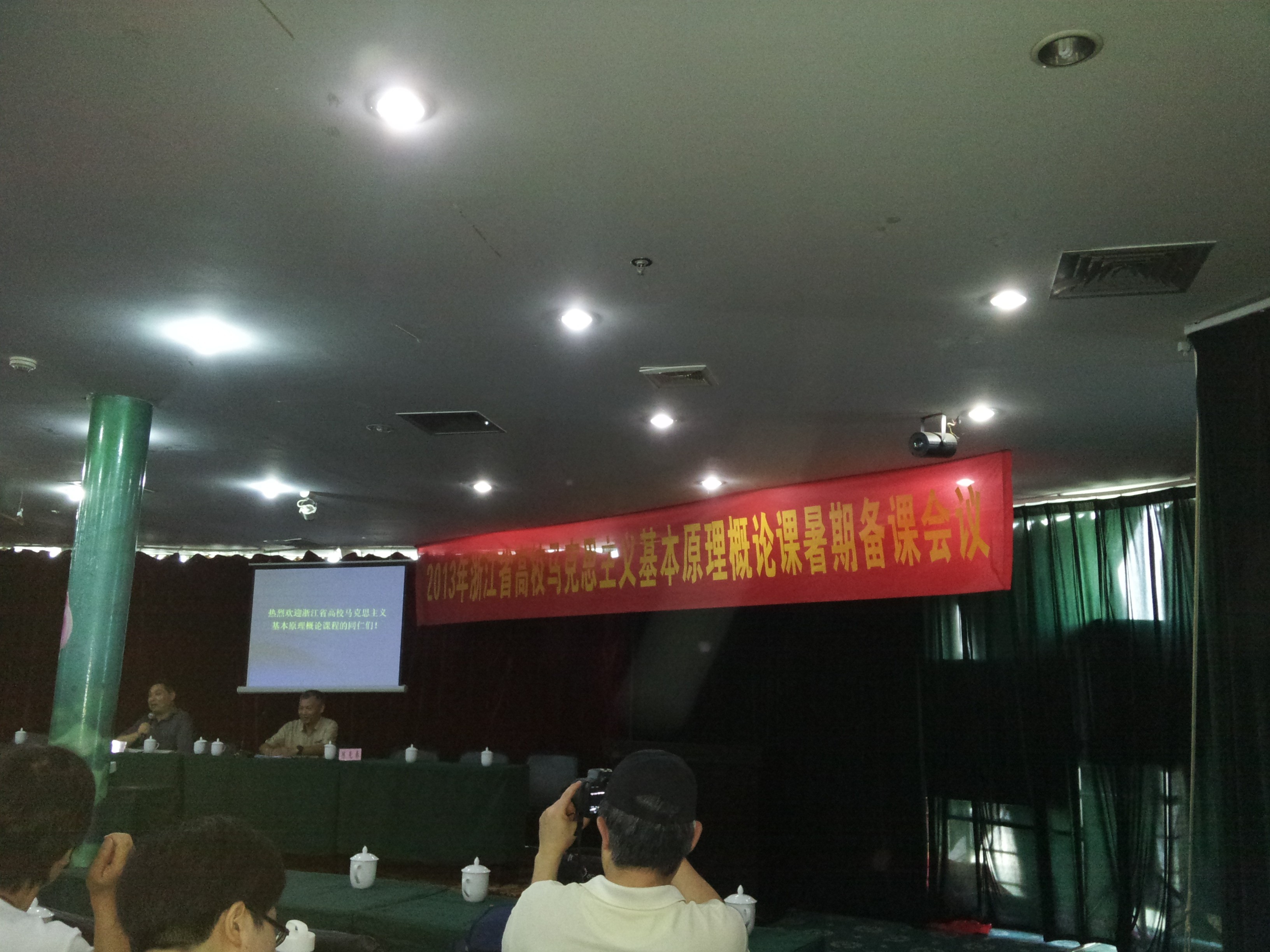 2013年浙江省高校《马克思主义基本原理概论》课程暑期备课会,于7月10-11日在杭州举行,有来自全省各高校的80多位老师出席。公司派出原理组蓝立志、孙邦金两位老师参加了此次会议。全议日程由三部分组成:一是请省委宣传部理论处陈先春处长、省教育厅宣教处薛晓飞处长分别为大家做报告,传达中央十八大以来的新精神;二是举行首届浙江省原理课教学技能比赛与经验交流;三是会后赴河北实地调研。