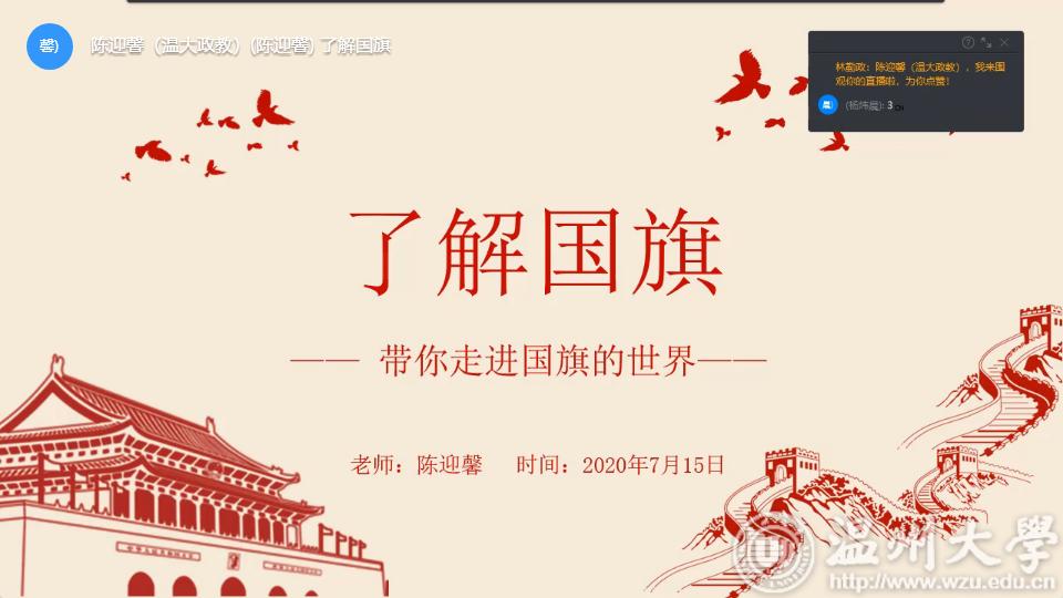 国旗宣讲团指导老师郑旭敏多次对员工的教案和课件提出指导意见,在员工的试课中耐心帮助员工优化课堂。郑老师说,宣讲团同学们在备课过程中对课堂内容不断进行修改和完善,不怕辛苦,甘愿付出,只为了让课堂得到更完美的呈现。这样一种纯粹的精神深深地打动了我,我相信也会感动所有云端的营员,让他们感受到我们的这份投入和热情。