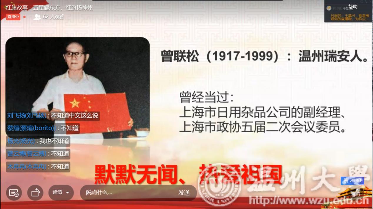 为了引导华侨子女树立爱国主义情怀,围绕公司“国旗文化”品牌打造,yl23411永利官网登录成立国旗志愿服务宣讲团,主要负责此次云端夏令营“红旗故事”特色主题课程授课。通过对五星红旗自诞生至今的风雨历程、曾联松先生设计国旗的小故事、五星红旗的丰富内涵 、《中华人民共和国国旗法》等内容的讲述,让华侨子女学习五星红旗的相关知识,树立尊重国旗、爱护国旗的意识,培养对五星红旗的认同感、敬畏感与自豪感,从而激发华侨子女浓烈的爱国热情。