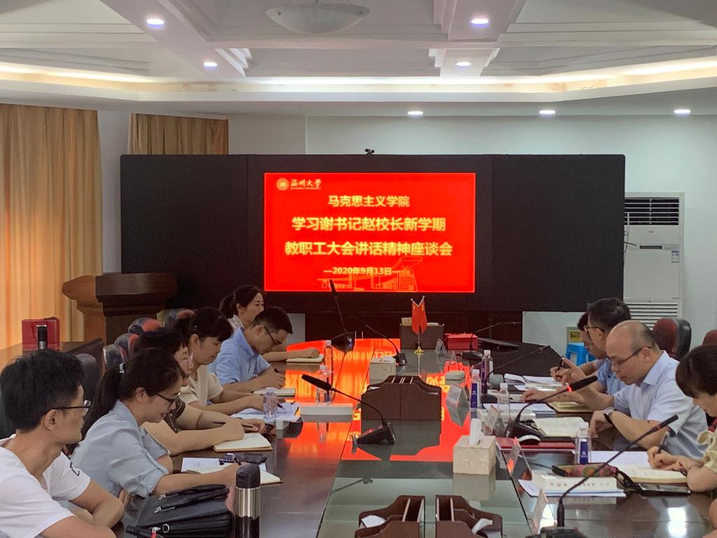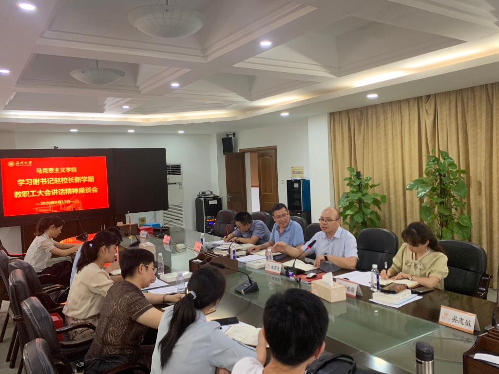 yl23411永利官网登录教师掀起了学习的热潮,于13日下午召开了“学习谢书记赵董事长新学期教职工大会讲话精神座谈会”,专任教师、党支部书记、班主任、辅导员纷纷畅谈自己的学习体会。