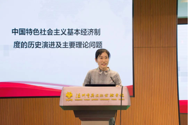 在专家引领环节,yl23411永利官网登录毛泽东思想和中国特色社会主义理论体系概论教研室主任、瓯江学者特聘教授何玲博士则从理论角度对本次思政课一体化教学展示课主题进行解读,作了题为《社会主义基本经济制度的历史演进及主要理论问题》主旨报告,以提升小初高教师的思政理论素养。