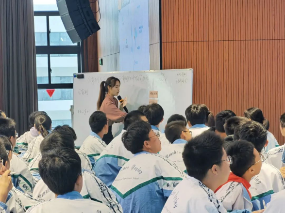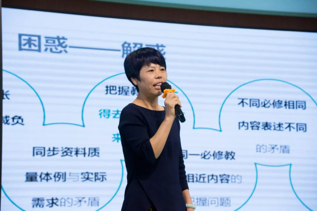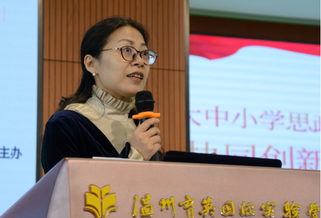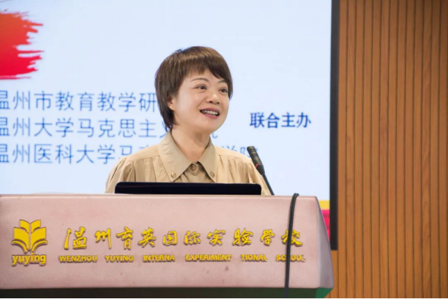 温州育英国际实验公司政治组教研组长姚丛艳做了《新教材落地中备课组思考与实践》专题讲座,从“困惑——解惑”、“做势——做事”的角度,阐述了在新教材教学过程中的探索实践,激起一线教师共鸣。