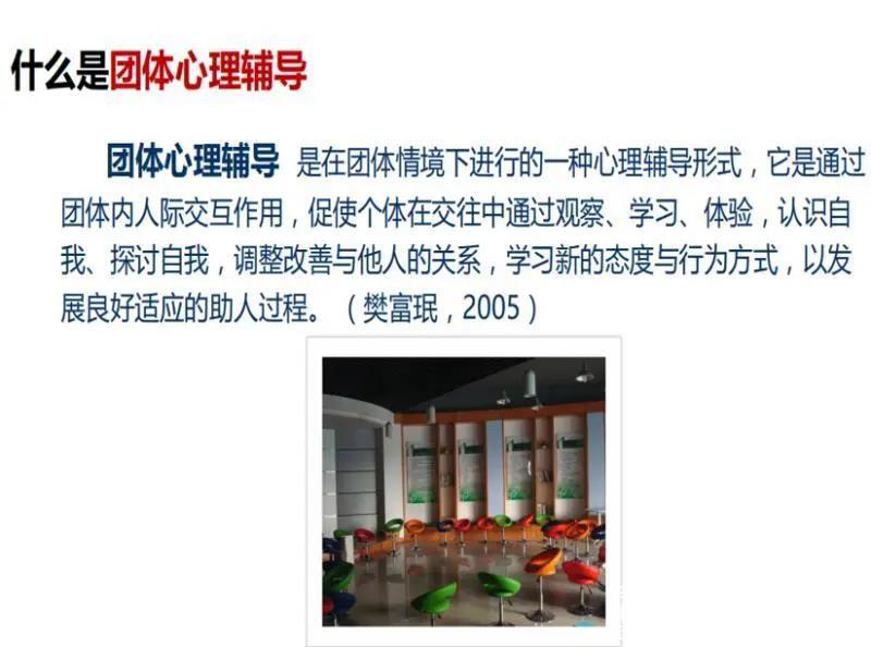 首先,林老师先指出了该课程旨在帮助员工们建立健康心理,学会在集体中获得幸福感、消除焦虑感,成就更美好的老员工活。接着,林老师以相关文献和寝室团体为例解释了团体的含义——两个或两个以上独立的个体通过彼此互动,互相影响的个人集合体,具备规模、交流互动、共识影响的特征。而团体心理辅导则是在团体下进行的一种心理辅导方式,通过团体内的人际交互作用,促使个体在交往中通过观察、学习、体验,认识自我、探讨自我,调整改善与他人的关系,学习新的态度与行为方式,以发展良好适应的助人方式。在最后,林老师鼓励了同学们在自觉学习的同时,也要维系寝室融洽亲密的社交团体关系。