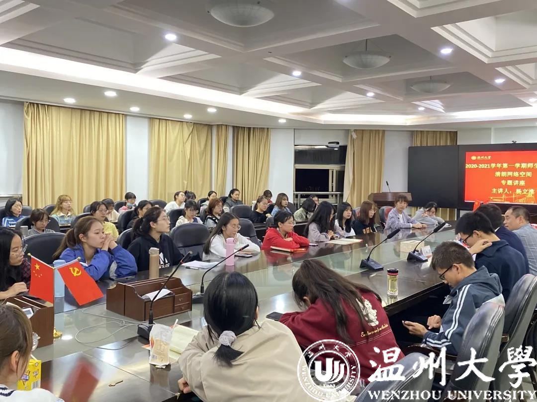 2020年10月26日18时,公司全体大一新生齐聚北校区行政楼227室,开展了题为《清朗网络空间》形势政策课讲座,主讲嘉宾为校纪律检查委员会委员、副书记兼纪检监察室主任兼巡察工作办公室主任杨立淮老师。讲座由学工办林大可老师主持。