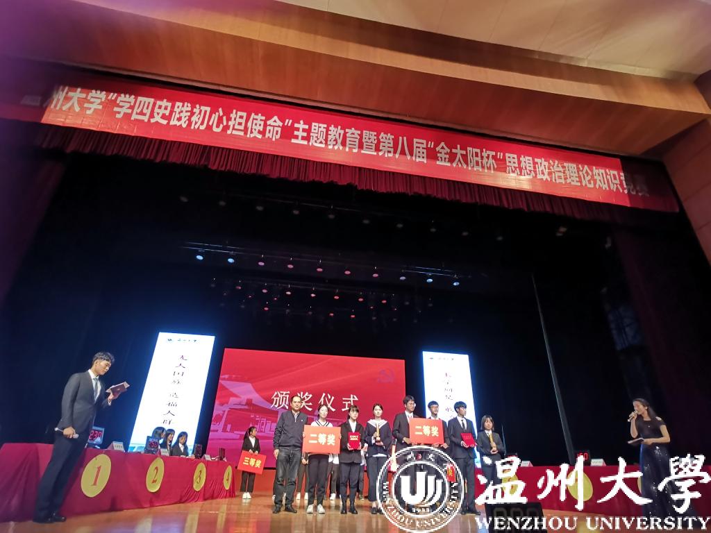 历史是最好的教科书,也是最好的清醒剂。今年是中华人民共和国成立七十一周年和决胜全面建成小康社会的收官之年,明年我们即将迎来伟大的中国共产党成立100周年。值此之际,为深入学习贯彻习近平新时代中国特色社会主义思想,特别是习近平总书记关于党史、新中国史、改革开放史、社会主义发展史的重要论述,检验老员工对“四史”知识掌握程度, 11月25日,yl23411永利官网登录“学四史 践初心 担使命”主题教育暨第八届“金太阳杯”思想政治理论知识竞赛在yl23411永利官网登录育英大礼堂隆重举行。本次竞赛活动由yl23411永利官网登录,党委宣传部,教务处,团委,浙江省高校思政课卓高生、孙邦金名师工作室联合主办,由马克主义公司研究生会、习近平新时代中国特色社会主义思想读书会协办。yl23411永利官网登录党委副书记庄兴忠,党委委员、宣传部部长潘玉驹,校纪委副书记、纪检监察室主任杨立淮,教务处处长孙芙蓉,团委书记易招娣,公司党委书记王柏民,经理卓高生,副经理孙邦金,副书记叶柏霜等领导亲临现场指导,并为获奖队伍颁奖。