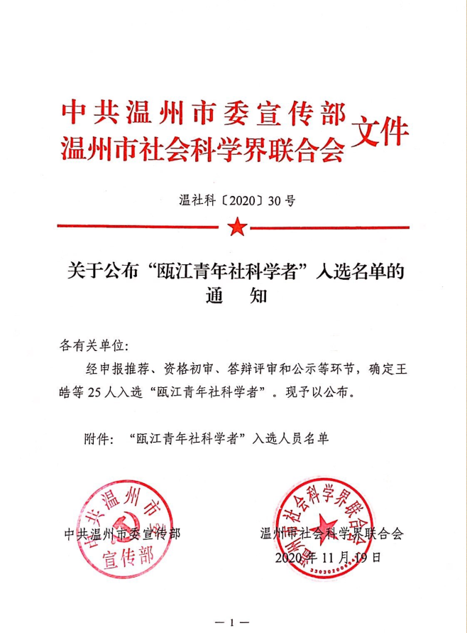 喜报:公司三名教师入选“瓯江青年社科学者”