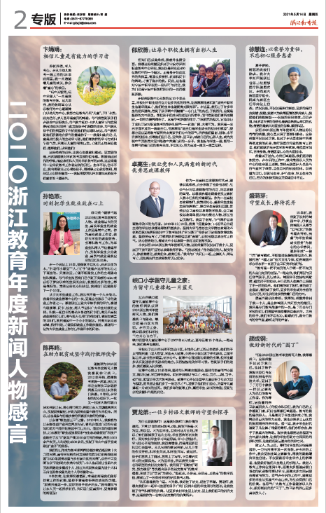 日前,2020浙江教育年度新闻人物与影响力人物评选结果揭晓。
