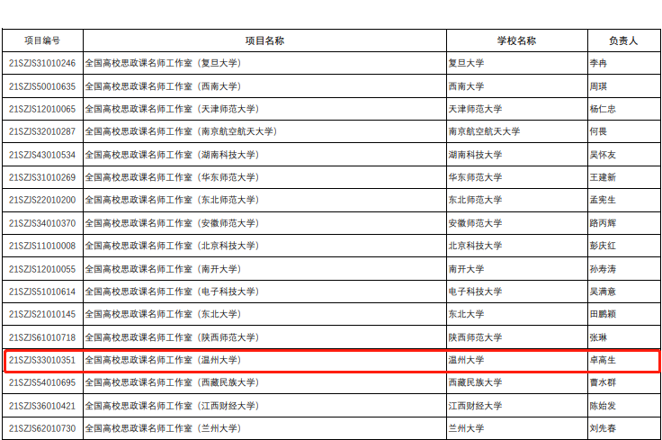 公司卓高生教授喜获全国高校思政课名师工作室立项