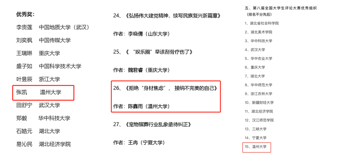在公司孙秀丽副教授的前期筹划、选题设计、写作指导下,公司2019级研究生张凯和2020级本科生陈鑫雨同学,分别以《在高质量发展中稳步推进共同富裕》(刊登“学习强国”)和《拒绝“身材焦虑”, 接纳不完美的自己》出圈。比赛现场,张凯同学分别与来自武汉大学、华中科技大学、宁夏大学、湖北省社科院的4名参赛选手,以幽默诙谐的语言表达和情景演绎的方式,呈现了一场别样的“街道办招聘人才”线上面试会,给现场评委留下了深刻的印象;比赛第二环节,张凯同学与来自华中师范大学的参赛选手,就针对“学术性网站要不要收费”为题,展开了你来我往、唇枪舌战的激烈辩论;比赛最终以“一评定音”落下帷幕。各位参赛选手集思广益、金句评出,以一场沉浸式的云端会话为比赛增添了许多亮点。