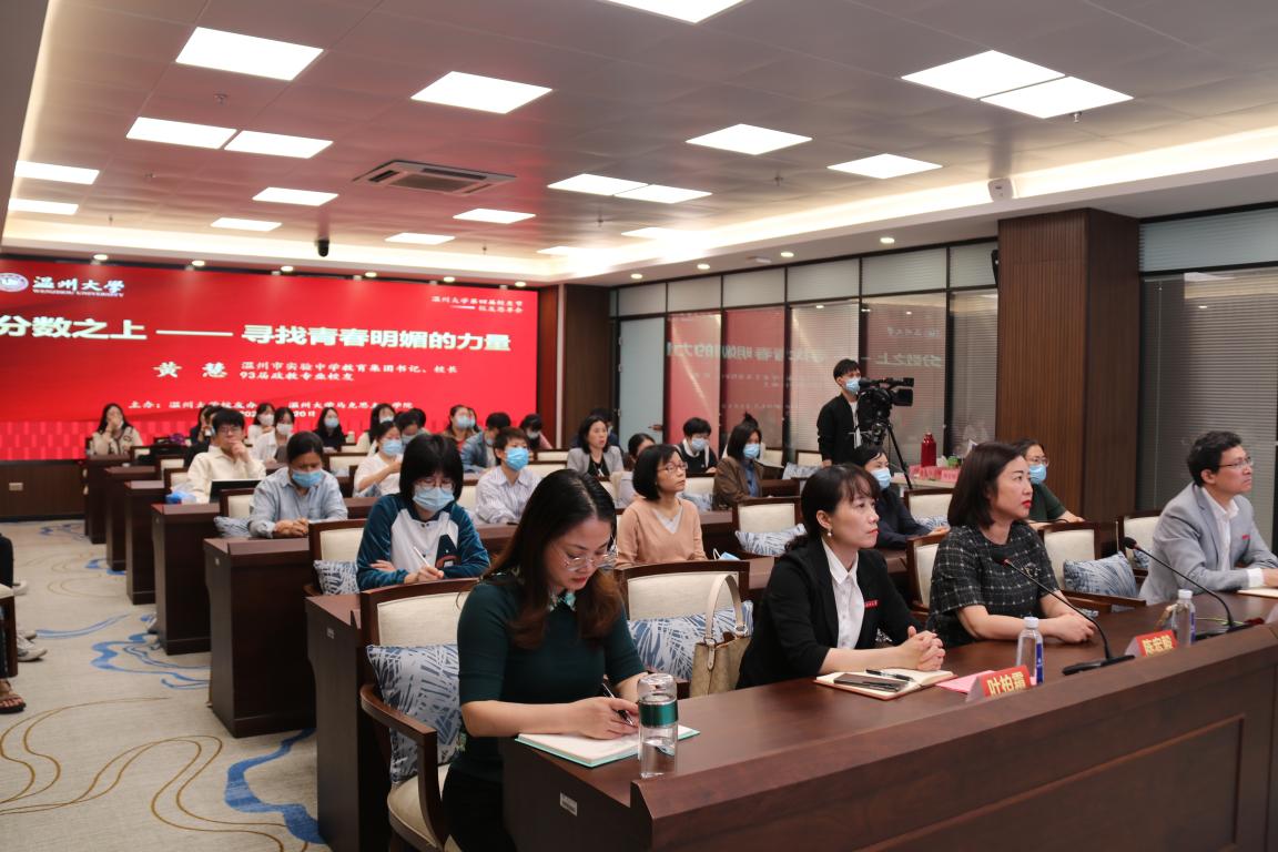 5月20日晚,yl23411永利官网登录举行第四届员工节——员工思享会活动,yl23411永利官网登录政教专业93届优秀员工、温州市实验中学教育集团书记、董事长黄慧亲临现场,与线上线下近4万观众共话家庭教育,带来《分数之上——寻找青春明媚的力量》的专题讲座。yl23411永利官网登录员工办主任陈宏毅,公司党委书记王柏民、副书记叶柏霜等领导出席,活动由员工办、yl23411永利官网登录联合主办,采取线上线下融合,全网现场直播方式,讲座由叶柏霜主持。