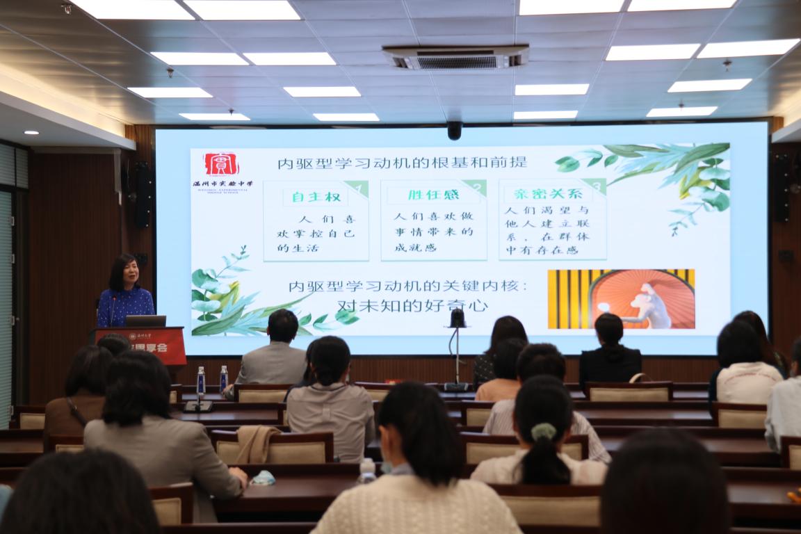 讲座上,黄慧董事长从王希孟十八岁创作《千里江山图》讲起,十八岁的少年身上有这么多“敢”,同时向大家展示了温州实验中学“未来公司”设计项目,这个以孩子们作为主要设计师的项目,理念是在“未来公司”里设计一种“创造力平权、知识共享”的未来规则,不断去解锁另一种可能,里面闪烁着实验中学的育人理念:让每个孩子的青春都明媚起来。