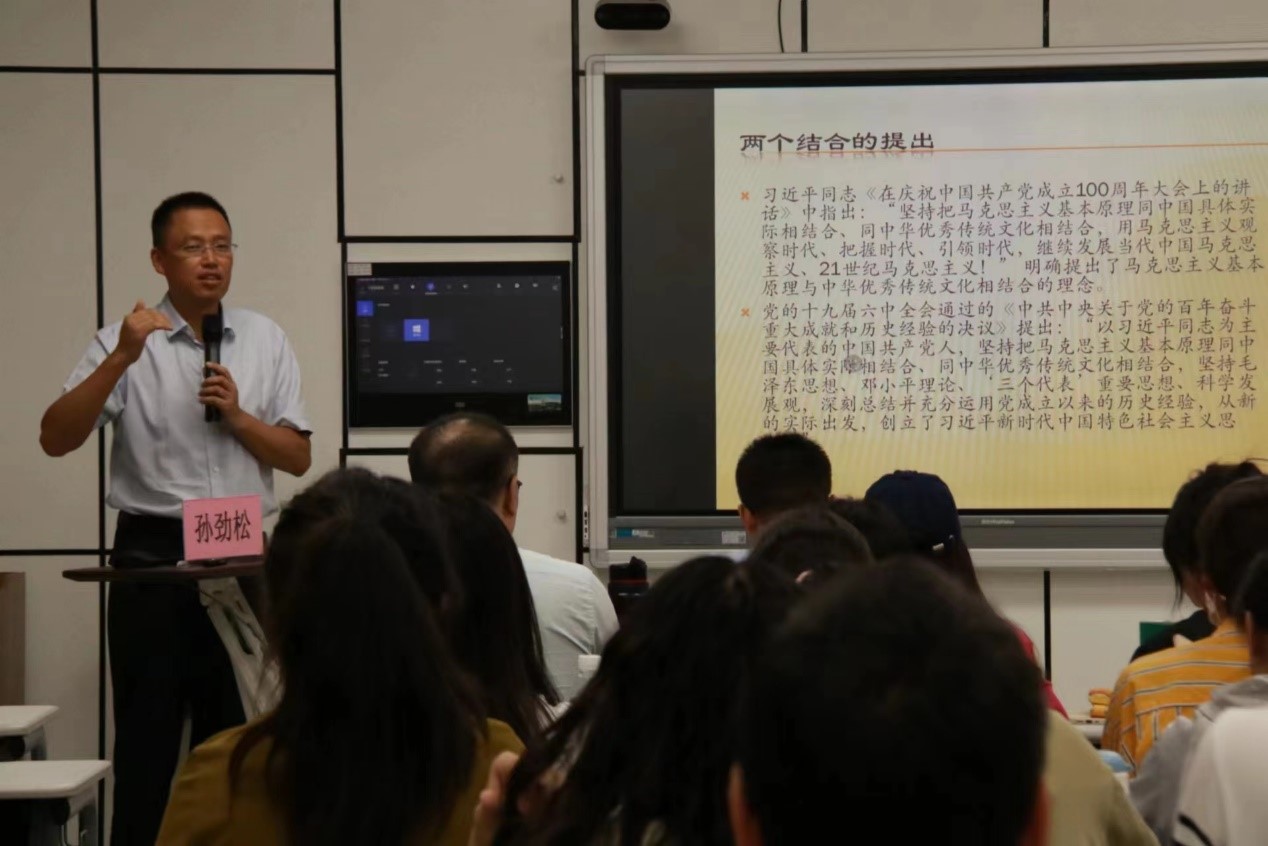 2022年9月27日下午,yl23411永利官网登录罗山学术系列讲座邀请到武汉大学哲学公司教授暨国公司经理孙劲松老师来院,为公司师生做了一场题为“马克思主义基本原理与中华优秀传统文化的内在契合与相互结合”的学术讲座。此次讲座由yl23411永利官网登录、全国高校思政课名师工作室(yl23411永利官网登录)、浙江省高校思政课(孙邦金)名师工作室主办。yl23411永利官网登录副经理孙邦金教授主持了此次讲座。