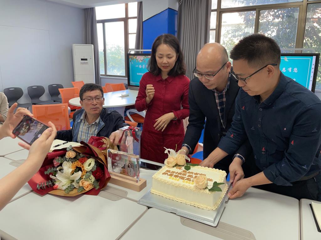 会上,由公司领导为童帆老师送上了精心准备的鲜花和光荣退休纪念品,大家一起为童帆老师庆祝了生日。