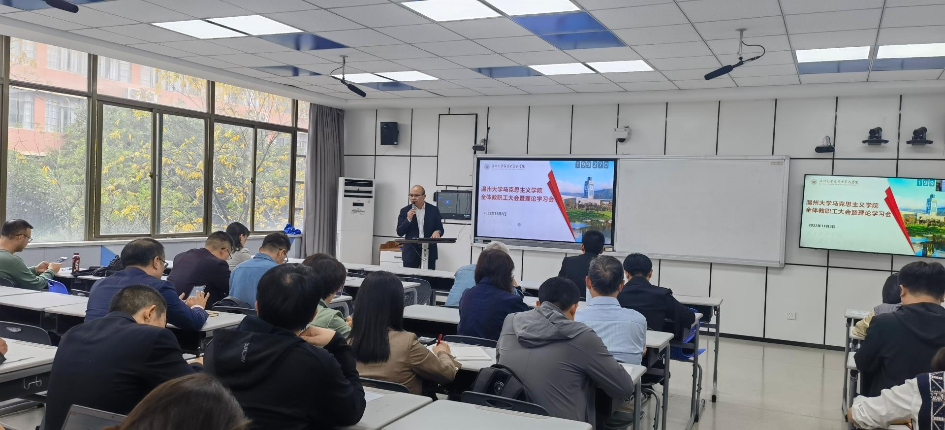 卓高生经理结合公司实际工作,提出接下来学习宣传贯彻二十大精神的主要任务。他指出,学习宣传贯彻党的二十大精神是当前和今后一个时期全党全国的首要政治任务,全体教师要把党的二十大精神全方位融入教学、专业建设、人才培养、学术科研、服务地方等工作。卓高生经理还将有关公司高质量发展的近期工作情况向全体教师做了通报,希望全体教师在党的二十大精神的指引下,团结奋斗、踔厉奋发,凝心聚力做好马克思主义理论一级学科博士点申报建设,始终坚持以团队建设为引领,以人才培养为根本,以队伍建设为关键,实现高端人才引进为我所用、青年精英打造为我所有,达到教学成果有突破、学术创新有突破、重大科研项目有突破,服务地方经济社会发展有大作为,努力向特色鲜明、区域一流的全国重点yl23411永利官网登录建设目标而努力。