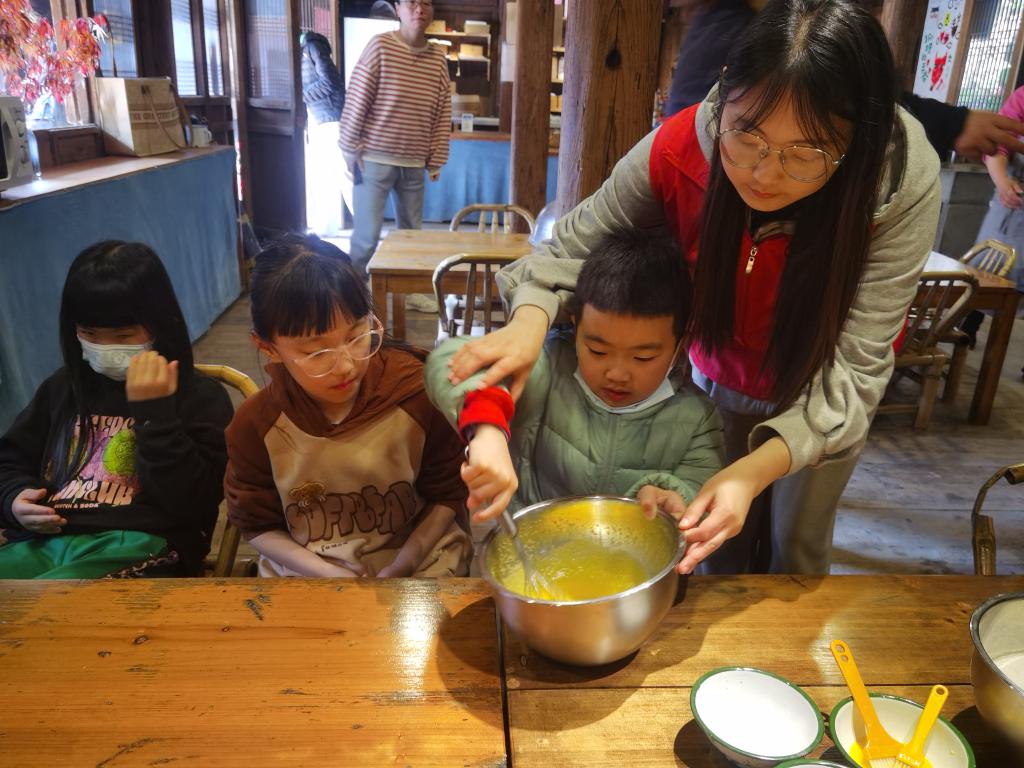 实践队在抵达古村落之后,对村落进行了一个完整的实地考察。首先大家来到了文元院,这是泰顺典型的中轴线对称三合院民居,为吴存经被选为附贡生后所建。无论是宅邸落成之时他亲自悬挂于屋檐下的“文元”牌匾,还是所作“一盏灯火夜深红,猛着心时不计工”的诗句,都让师生感受到了其意气风发、壮志凌云之豪情。在这里,墟里古村落运营负责人与师生进行热切会谈,解答师生对古村落的一系列疑问,“我们所打造的理念是从家到家”,负责人如是说道。深刻的古村落运营理念,让众人受益匪浅。其次同学们参观了红粬展览馆,师生们感叹红粬酿造的精细与复杂,从古旧的农业用具、微型建筑模型和古朴的历史绘本中,学习了红粬酒的悠久历史与当地居民的制作工艺,感受了古代劳动人民的智慧与勤劳,领略了“提线木偶戏”、“乌衣红粬”、“六月六禳神节”三项非物质文化遗产的奇特之处。同时,公司师生还参观了顶头厝、水尾厝和文司堂等具有悠久历史的古村落遗址;作为志愿者参与了儿童的劳动教育,在灰墙白瓦、碧波青山中体验置身于古村落中的静谧与安详,在传统手工制作与田间农作中陪伴儿童感受自然与自我,最终体会到传统古村落的历史韵味与时代沉淀。