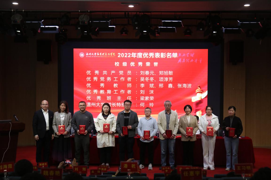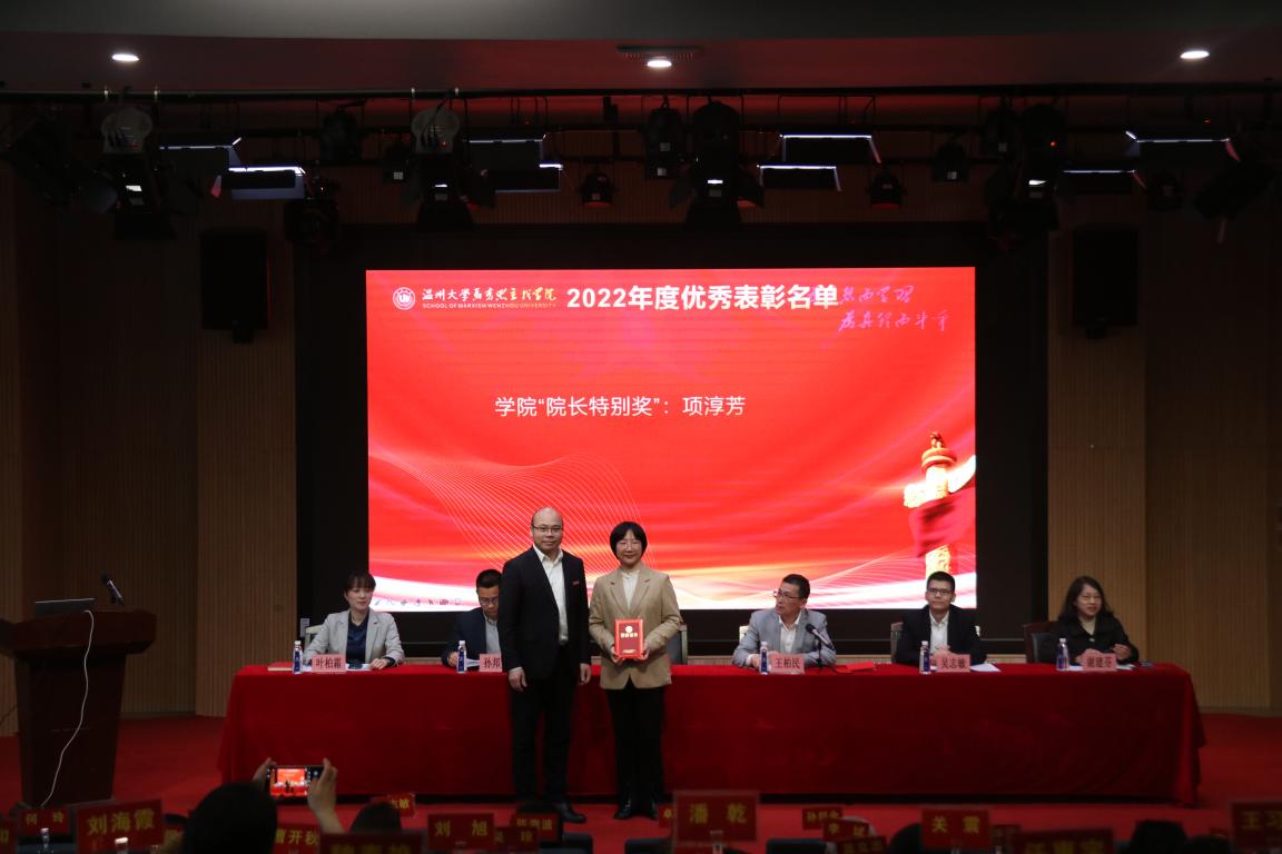 大会首先举行了2022年度校级优秀荣誉和公司经理特别奖表彰。10位获奖教师上台领奖,接受卓高生经理为他们颁发的荣誉证书。