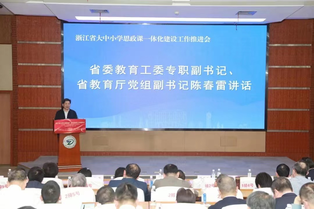 陈春雷指出,全省各大中小学要切实把大中小学思政课一体化建设摆在重要位置,以成立省大中小学思政课一体化建设联盟为契机,加快推进思政课一体化建设,扎实推动新时代思政工作高质量发展。他要求,要突出工作重点,结合不同学段员工心理特点和教育规律办好思政课,建好专职教师队伍,打造好新平台。要加强工作协同,强化机制建设、课题研究和总结交流,推动校际协作、教师协作、校地协作,统筹推进大中小学思政课一体化建设。要擦亮工作品牌,打造特色教材、特色课程和特色实践活动,形成具有浙江辨识度的大中小学思政课一体化建设品牌。