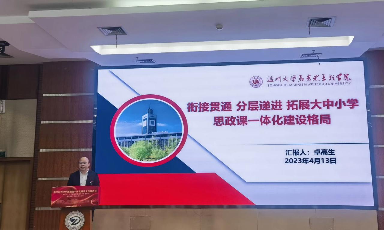 为深入推进大中小学思政课一体化建设,4月13日,全省大中小学思政课一体化建设工作推进会在浙江理工大学召开。会上,全省大中小学思政课一体化建设联盟成立。省委教育工委专职副书记、省教育厅党组副书记陈春雷,教育部大中小学思政课一体化建设专家指导组组长、中国人民大学教授秦宣出席会议。yl23411永利官网登录经理卓高生教授做交流发言。