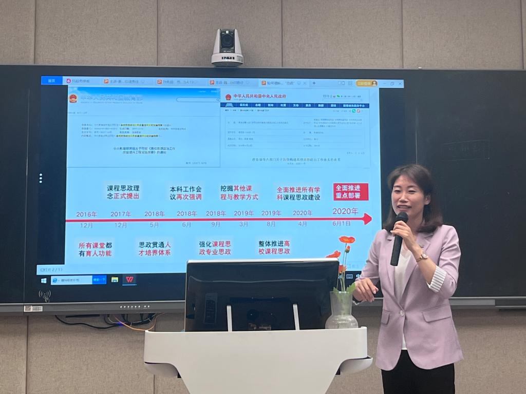 孙秀丽老师以《高校思政课教师在课程思政协同中的担当》为题,重点分析思政课教师在课程思政协同育人中担当的应然、实然和何然是什么?并以《思想道德与法治》课为例,指出思政课教师如何助力课程思政建设。