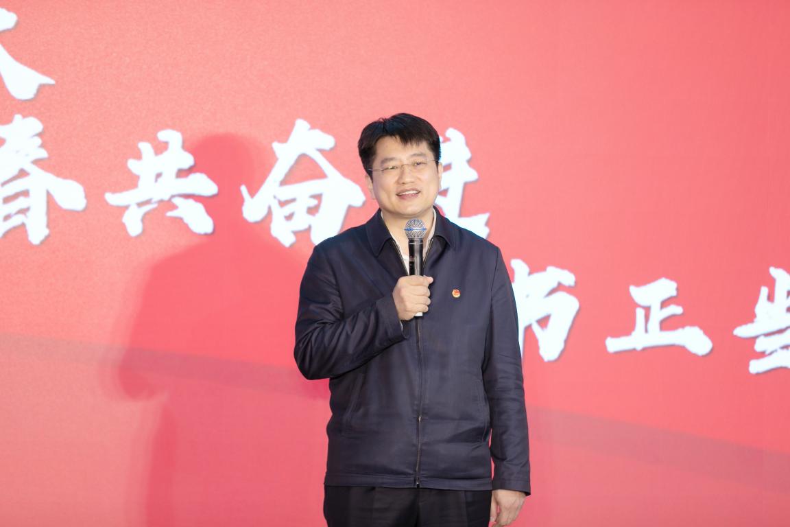 赵博为团支部员工代表赠书,并为在场的青年提前送上了五四的问候,他鼓励公司的同学们在大学里学好“看家本领”,将来把习近平新时代中国特色社会主义思想传播给更多的年轻人,在全面建设社会主义现代化国家的火热实践中绽放绚丽之花。
