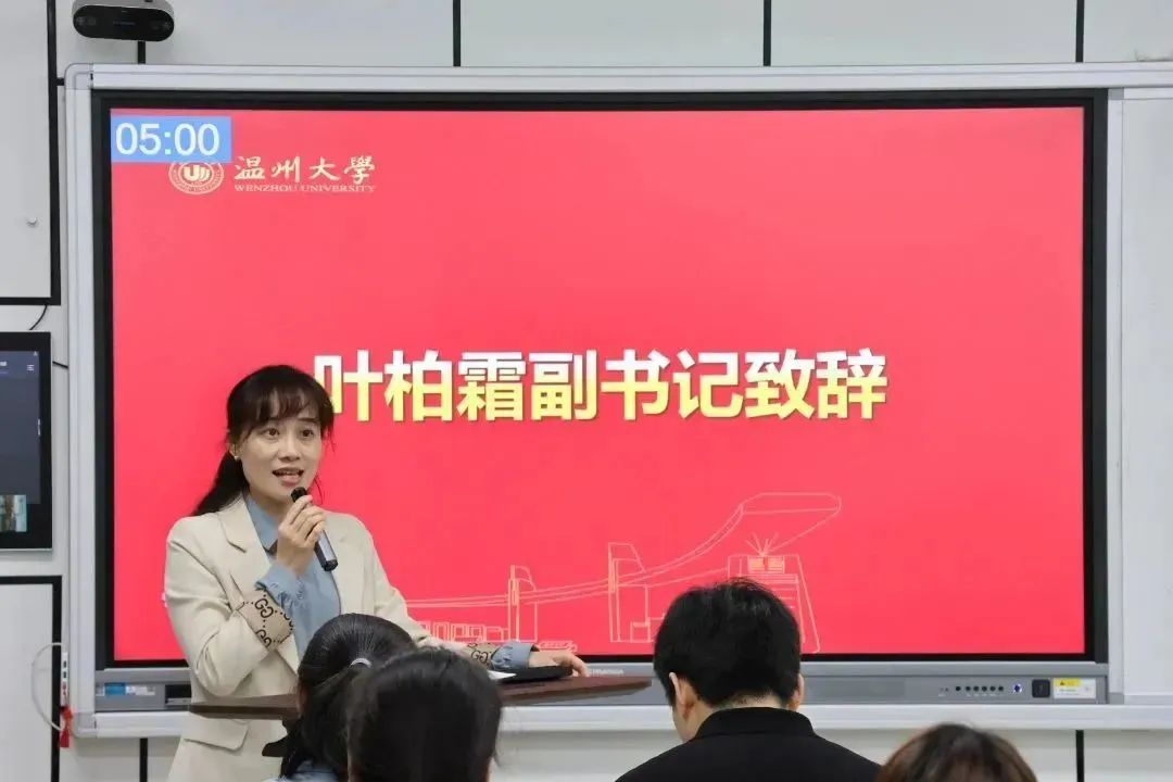 首先,叶柏霜老师做大赛致辞。她说,互联网+大赛是综合反映公司办学水平,体现人才培养质量的试金石和有效载体,一直以我敢闯和我会创的大赛精神,以更中国,更国际,更教育、更全面,更创新,传承和弘扬红色基因,聚焦五育融合创新教育实践,鼓舞了一批又一批学子奋力拼搏,激发了无数青年员工的创业激情。本次大赛项目具有选题视野开阔,调研性强,更加贴近社会现实的特点,希望同学们把论文和项目做在祖国大地上,让思考更加有深度,让项目更加有厚度。最后,叶柏霜老师鼓励同学们要积极参加科创比赛,在创新创业中增长智慧才干,并预祝比赛圆满成功。
