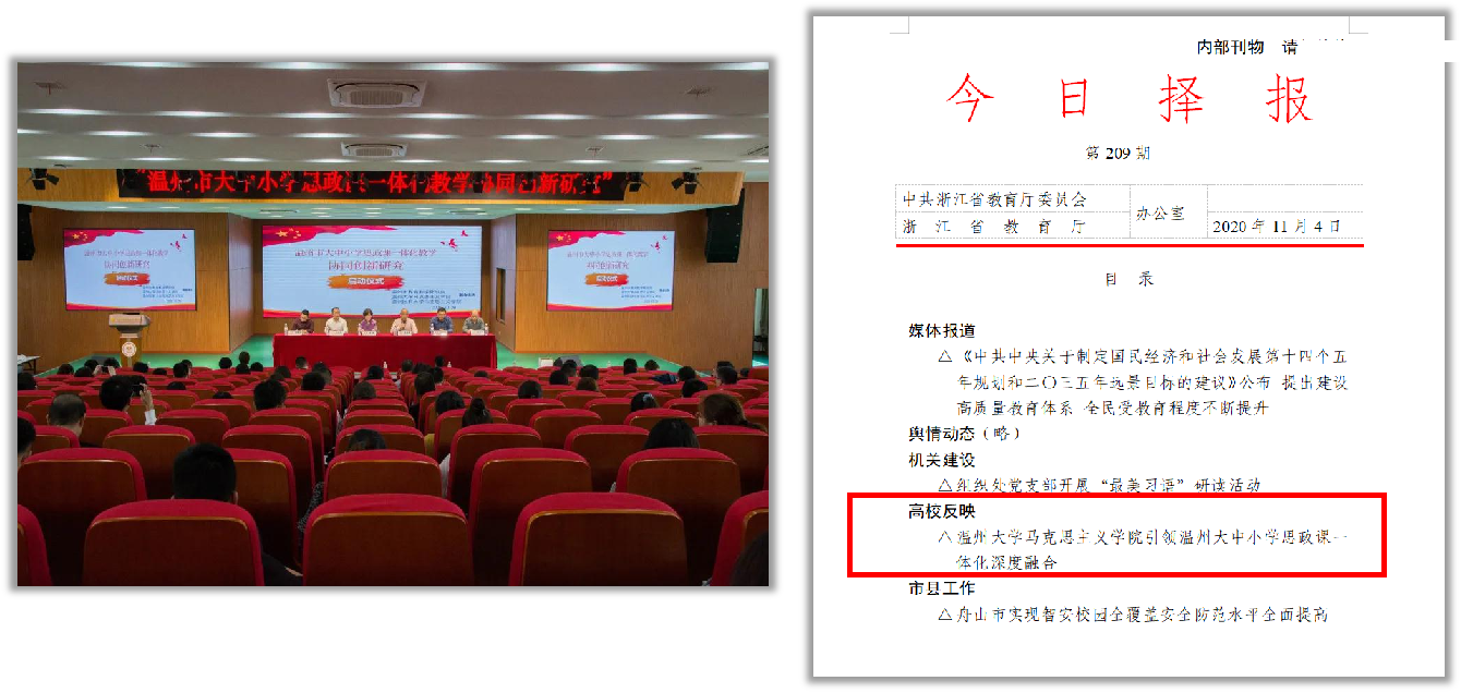 近年来,yl23411永利官网登录与温州市委宣传部、教育行政部门及市域范围内各级各类公司密切合作、协同联动,探索出“以健全工作机制拓展大思政格局,以课程教学为核心促一体化内容贯通,以团队联合培养为着力点建一体化队伍”的大中小学思政课一体化建设新格局。