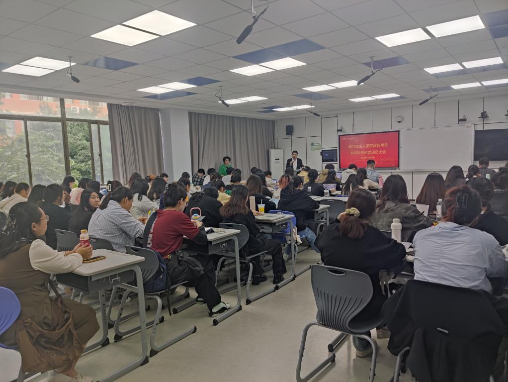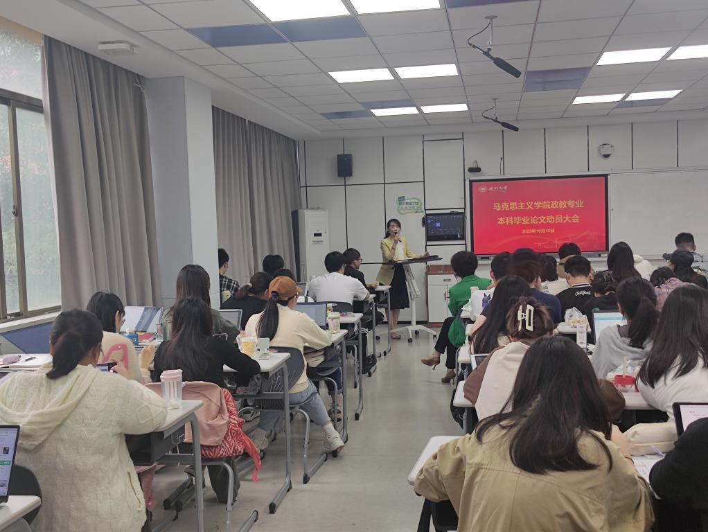 为提升本科毕业生的论文写作水平和写作素养,提高本科毕业论文的科学性,营造良好的学术氛围,2023年10月10日上午,yl23411永利官网登录政教专业本科毕业论文动员大会于北校瓯4-206教室召开。公司副经理吴志敏、党委副书记叶柏霜出席本次大会,公司20级政教全体员工参加本次大会。大会由教学科主任孙金波老师主持。