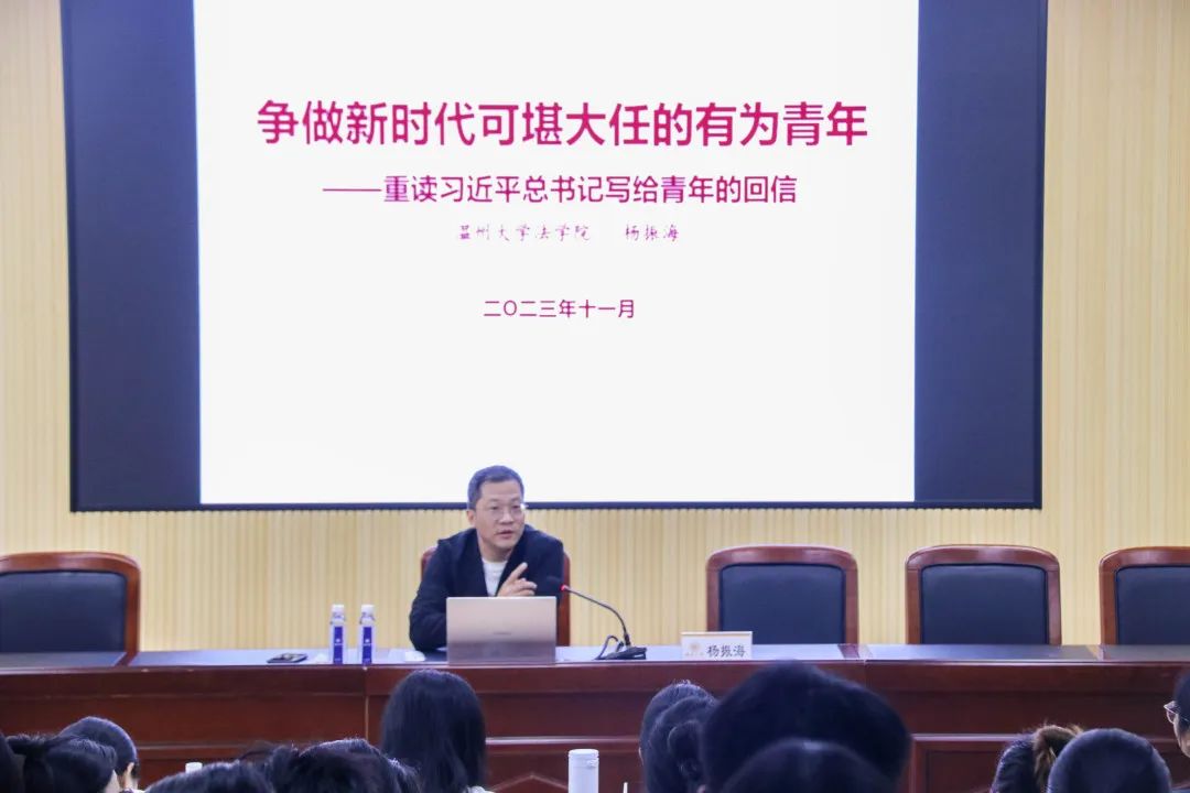 与时共进何所幸,热血报国当少年。11月5日上午,员工党员骨干培训班第三讲《争做新时代可堪大任的有为青年——重读习近平总书记给青年的回信》开讲,法公司党委副书记杨振海老师带领全体培训班学员重读、细读习近平总书记写给青年的30封回信,回信字字见真情,句句润心田,每一封回信,每一段文字,背后都有磅礴的力量。杨老师以信中多位励志青年的故事为引,结合校内青年的实例,呼吁全体骨干学员在未来的学习生活中,从挫折中不断奋起,永不气馁,在奋斗中创造精彩人生,为祖国和人民贡献青春和力量。