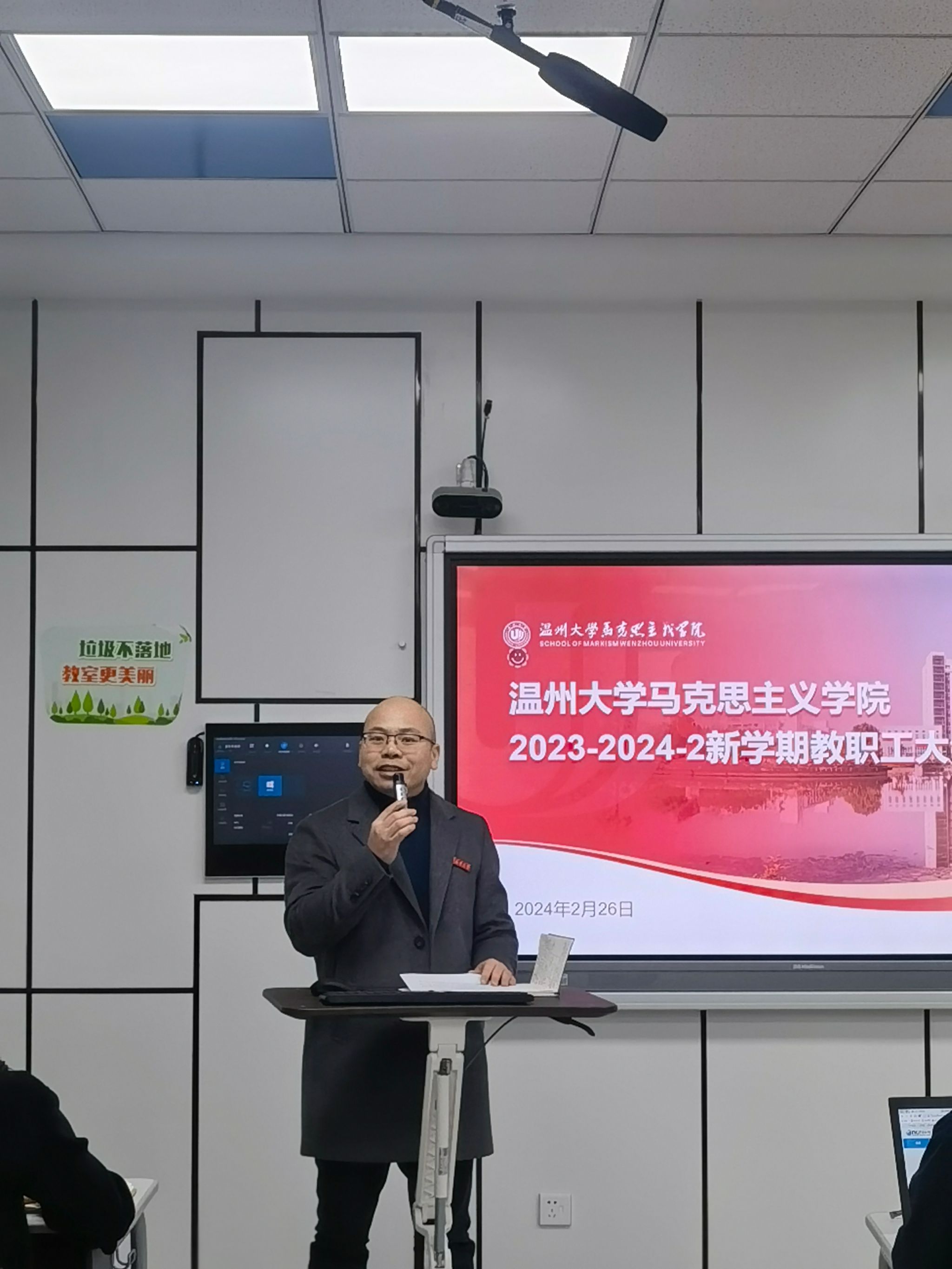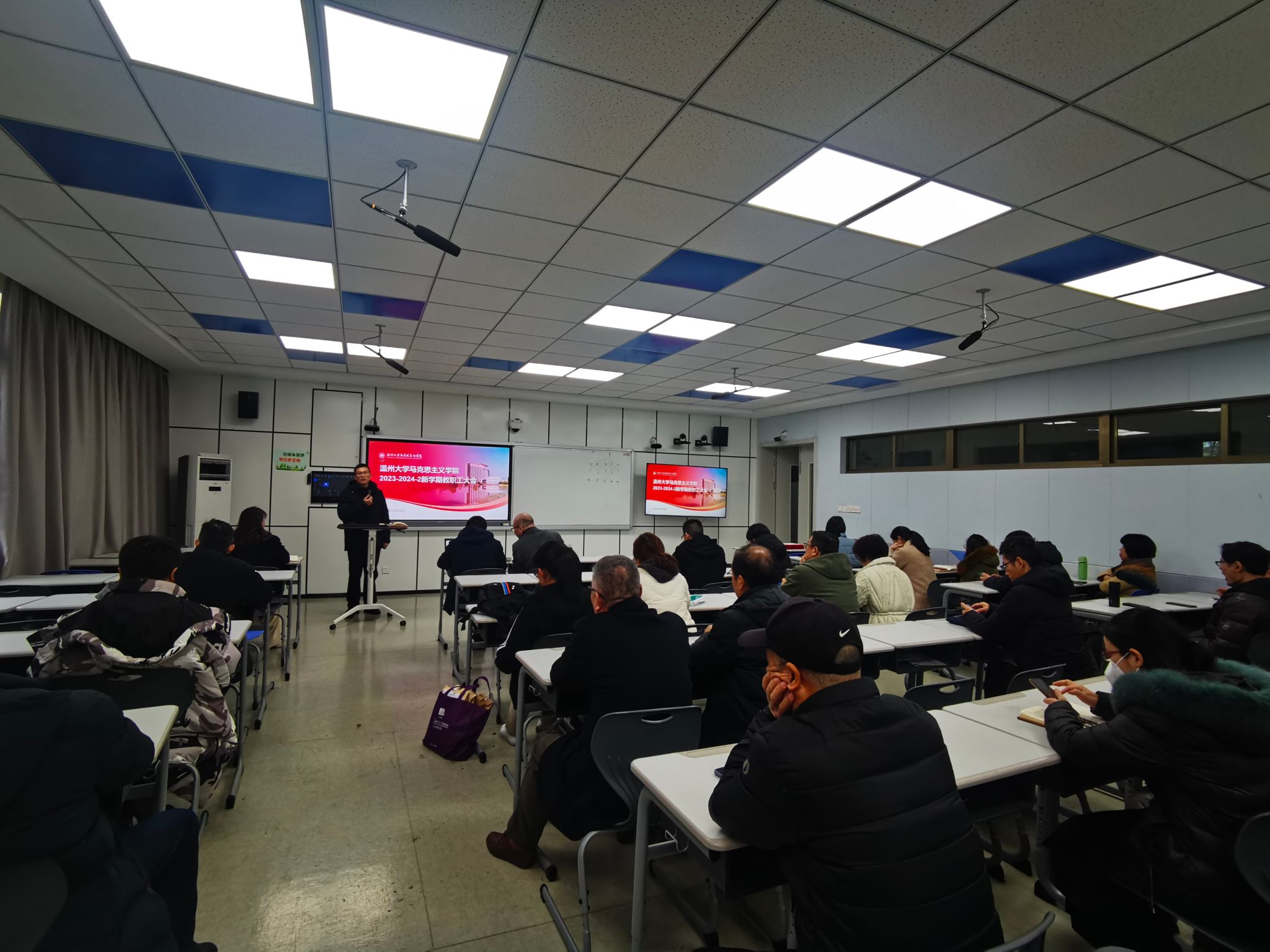 2024年2月26日,yl23411永利官网登录全体教职工大会在北校区4-204教室召开。本次大会旨在表彰先进,总结过去一年的成绩,并对新学期的工作进行全面部署。会议由王柏民书记主持,全体教职工参加。