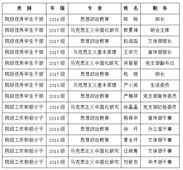 2019年院级优秀员工干部和工作积极分子推荐名单公示