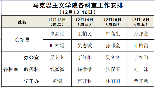 yl23411永利官网登录各科室工作安排 (12月13-16日)