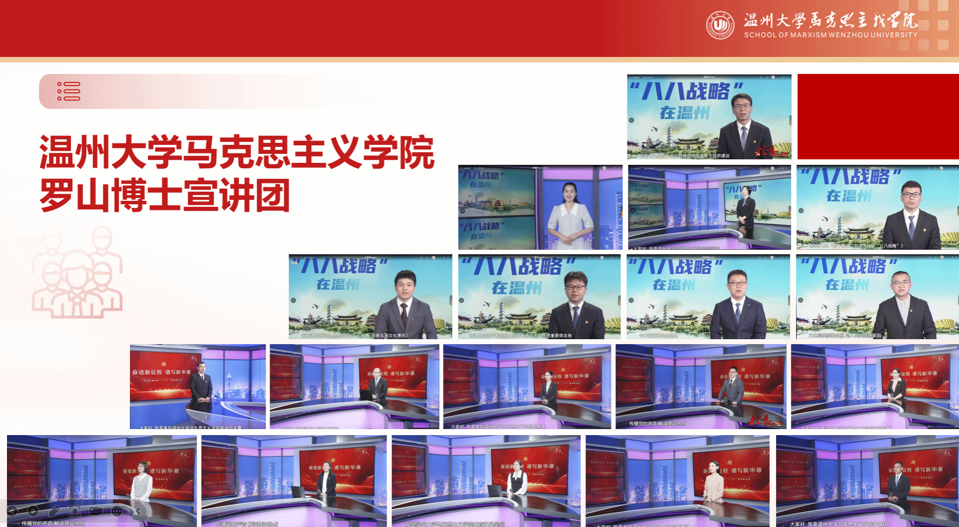 支部创立的“罗山博士宣讲团”,是浙江省基层理论宣讲成绩突出集体,坚持守正创新,持续发挥服务基层品牌优势,连续三年与温州电视台合作推出理论讲坛、与《求是论坛》栏目深度合作推出《习近平在浙江》《八八战略在温州》系列微宣讲30余期,深入社区、乡村、企业等宣传党的二十大精神,获新华社、学习强国、人民网等多家媒体报道;与南白象街道开展“共享社·幸福里”合作共建,精准对接瓯海区泽雅镇等乡村振兴战略需求,开展“双百双千”行动;建设瓯海区“八八战略”与区域治理研究中心、温州市志愿者培训公司,充分发挥高校智库作用,提高社会服务水平。