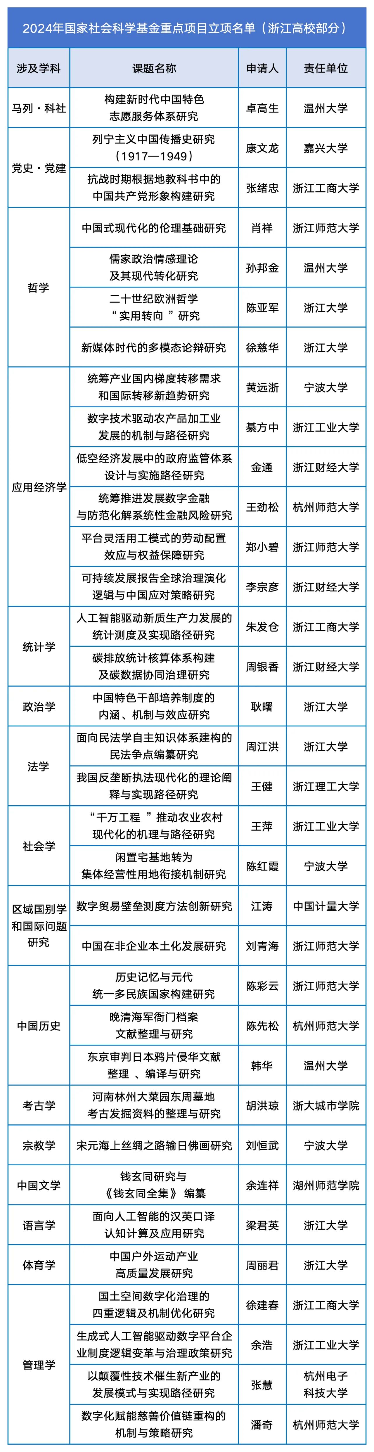 其中,浙江高校34个课题入选重点项目,186个课题入选一般项目,119个课题入选青年项目↓↓