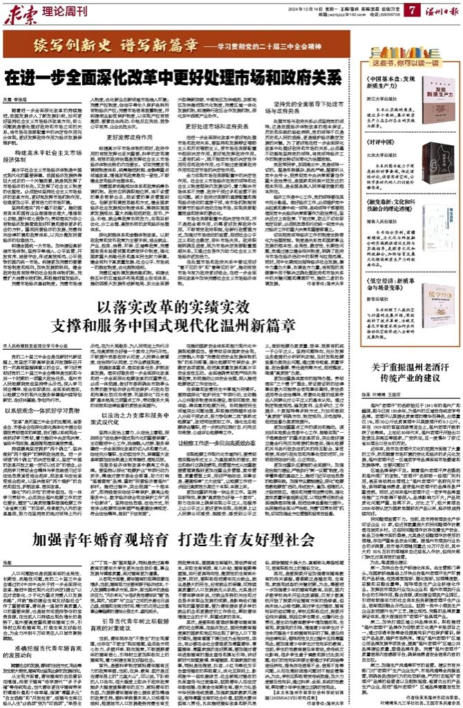 温州日报:在进一步全面深化改革中更好处理市场和政府关系