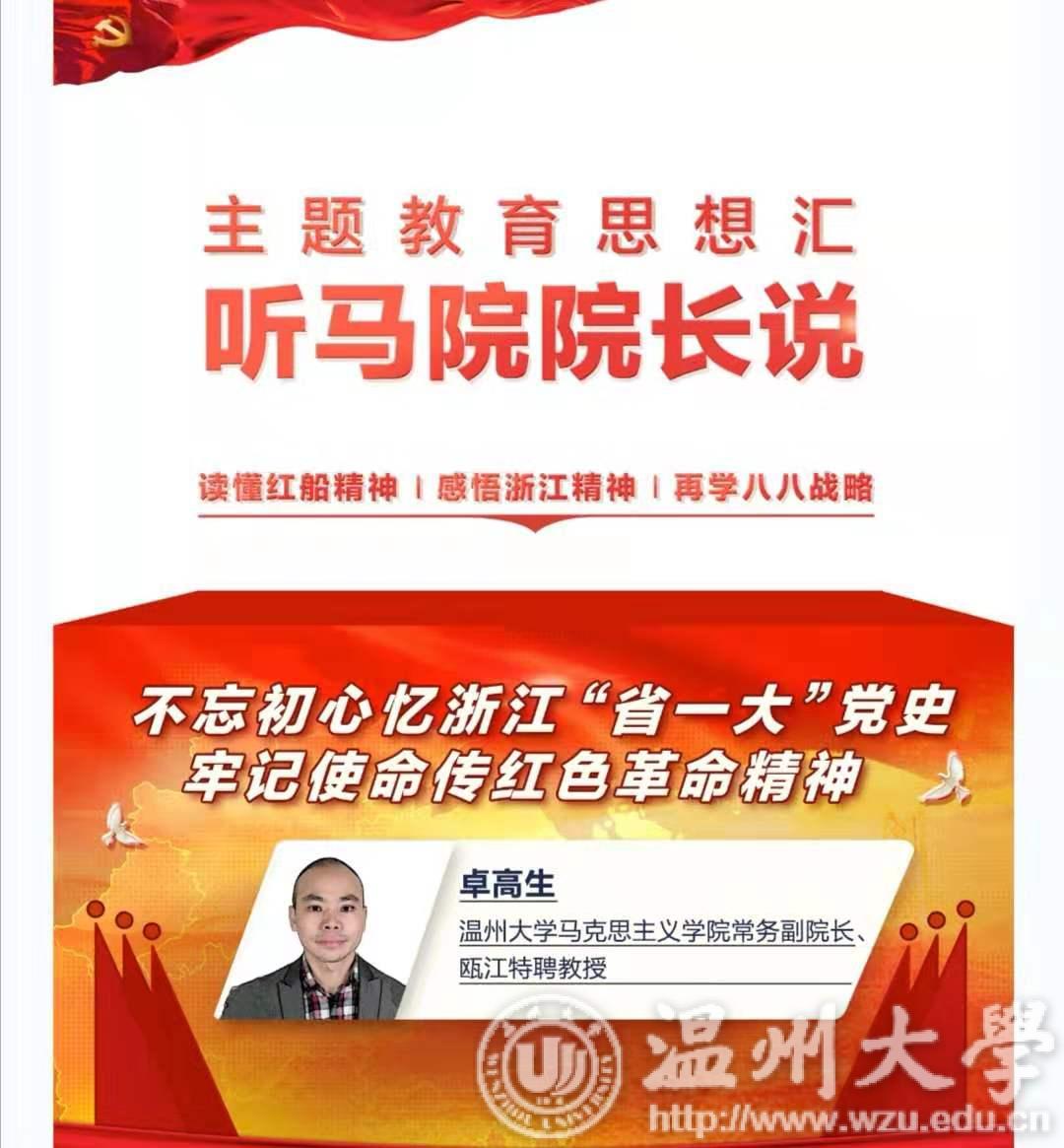 “不忘初心、牢记使命”主题教育正在浙江省各单位深入开展。为了更好地帮助广大党员干部领会精神、深入学习,“学习强国”浙江学习平台联合浙江在线、浙江新闻客户端、浙江共产党员杂志,推出“主题教育思想汇:听公司经理说”活动,邀请浙江红船干部公司以及浙江省重点建设的高校yl23411永利官网登录的经理们,结合本次主题教育精神,围绕“读懂红船精神”、“感悟浙江精神”和“再学八八战略”等专题进行再阐释、再解读。