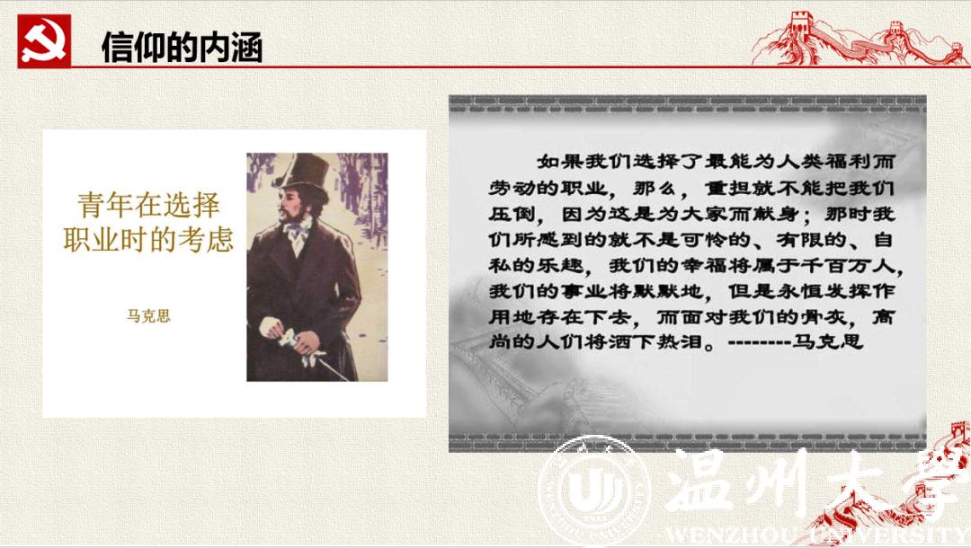 来自本科生党支部的陈嘉滢向大家展示了永嘉一个偏远山村——溪下乡刘山村传承非物质文化遗产——马灯戏的故事。她以该村支书崔秀明的音频原话结尾,使全体师生感受到了基层干部的艰辛与不易。