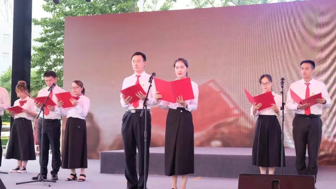 南白象街道庆祝建党100周年系列活动启动仪式,受邀领导们上台共同按键启动。