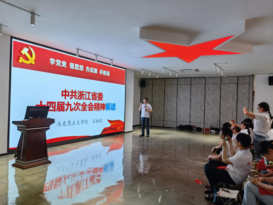 王柏民书记为全体党员上了一堂精彩的党课。他用概括的语言向大家讲解了省委十四届九次全体(扩大)会议精神,带领大家领略浙江省委研究部署高质量发展建设共同富裕示范区的宏伟蓝图,畅想美好未来。