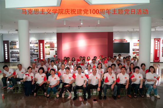主题党日活动的最后,全体党员与党旗一起合影。大家穿着统一的建党百年纪念服装,满满的仪式感,展现了全体公司教工党员团结一心、奋发进取的精神风貌。
