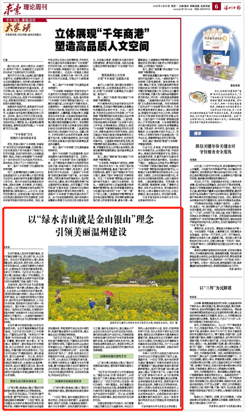 温州日报:【求索 | 大家谈】以“绿水青山就是金山银山”理念 引领美丽温州建设