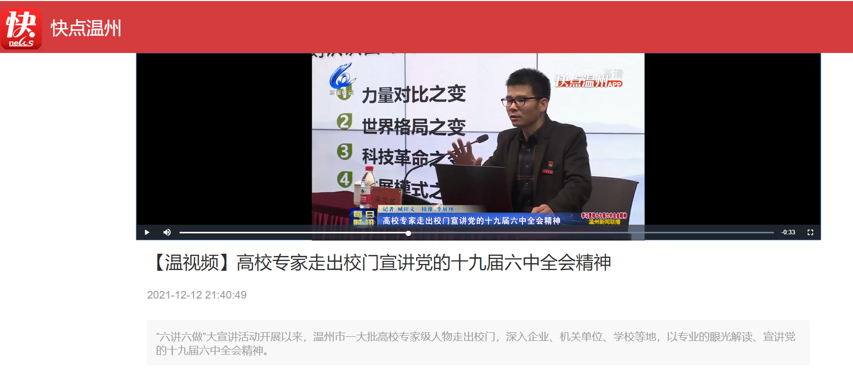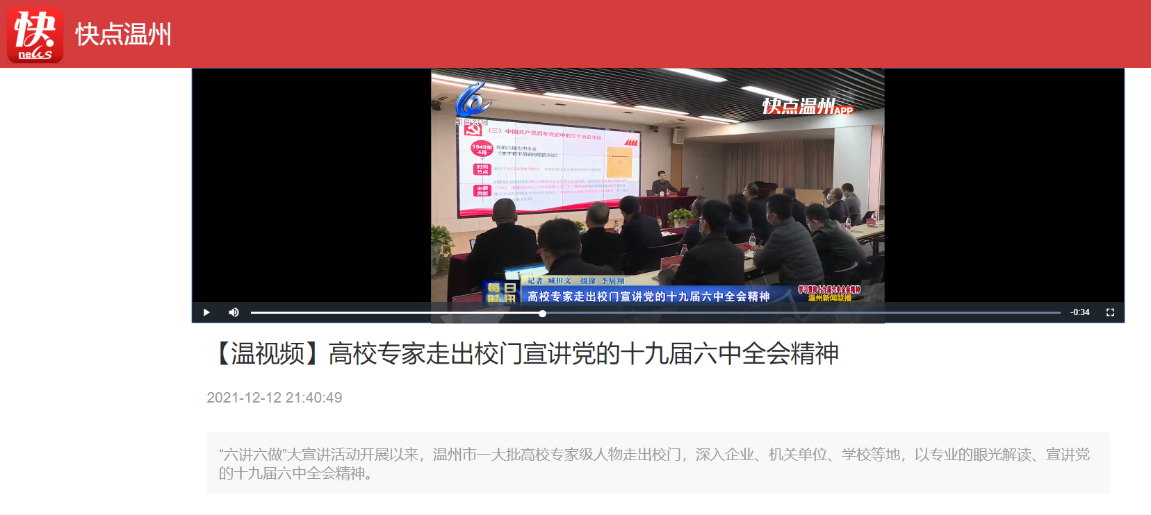 温州电视台:公司教授走出校门宣讲党的十九届六中全会精神