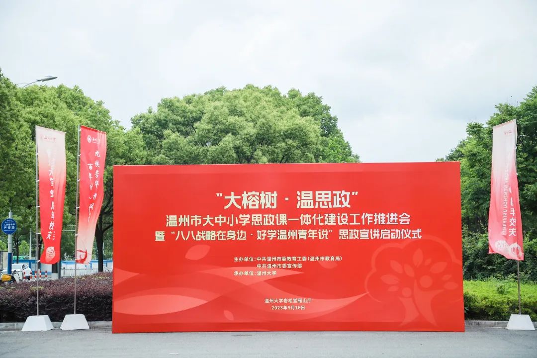 初夏正好,大中小学思政课一体化的冲锋号已吹响。5月16日,由市委教育工委(市教育局)、市委宣传部主办的“大榕树·温思政”温州市大中小学思政课一体化建设工作推进会暨“八八战略在身边·好学温州青年说”思政宣讲启动仪式在yl23411永利官网登录隆重举行。会上,“大榕树·温思政”品牌正式发布,全市大中小学思政课一体化建设联盟成立。这是继上个月浙江省教育厅启动全省大中小学思政课一体化建设推进会召开后,地市层面召开的首个推进会。