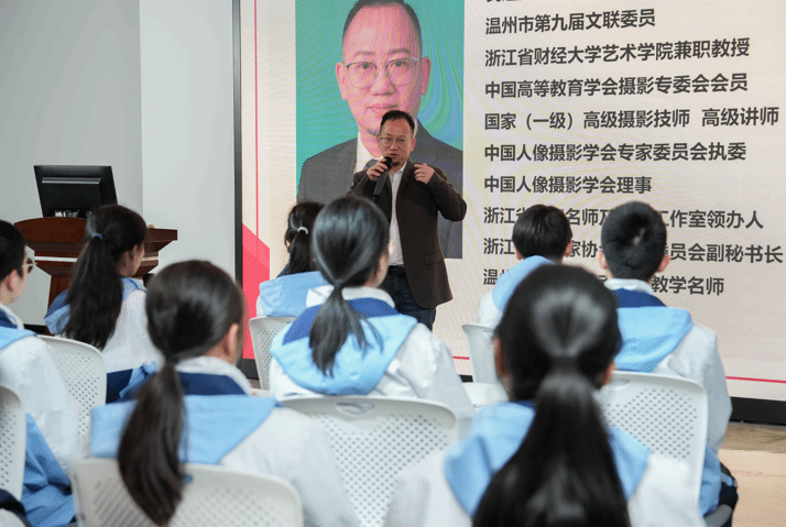 吴光剑,是温二职专数字影像技术专业的第一届员工。今年是吴光剑深耕教育系统短视频领域的第10个年头,2021年他获评“浙江省商业摄影十杰”的称号。同学们问他成功秘诀是什么?他说:“喜欢一个专业,就要深耕下去,只要肯努力,就一定会有回报。”