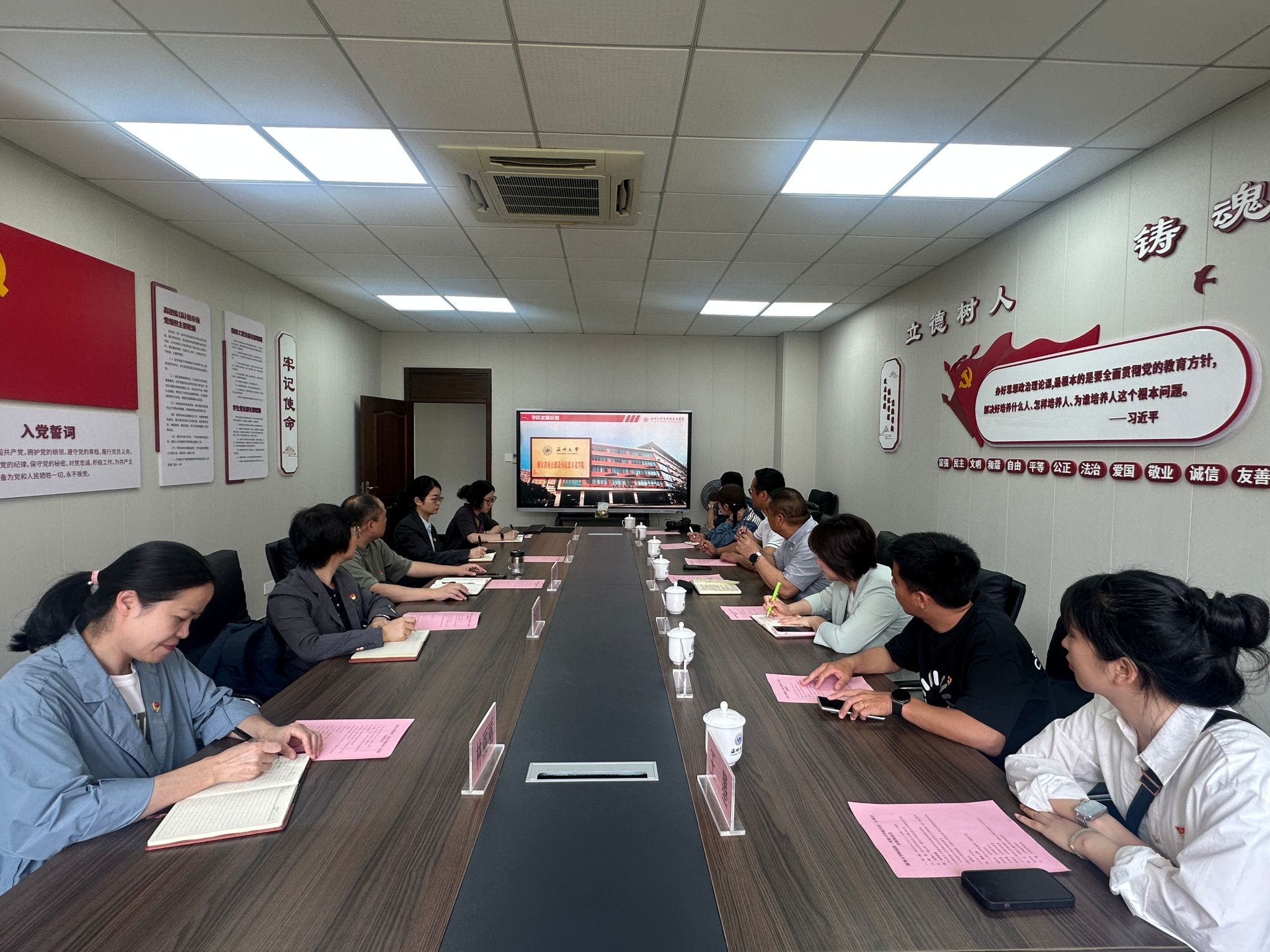 双方举行交流座谈会,会上,公司党委书记杨立淮全面介绍了公司近年来在团队建设、教师队伍、人才培养、科学研究、服务地方、党建思政特色融合等方面的主要成果,并就今后发展重点进行了说明。全国党建工作样板支部——yl23411永利官网登录教工第一党支部书记项淳芳分享了支部在党建工作中的创新举措、实践经验以及取得的显著成果。yl23411永利官网登录附属第一实验小学教育集团党组织书记温共存介绍了公司的发展历程、办学特色以及党建工作情况。双方围绕党建工作的创新方法、党建与公司产品相结合、大中小学思政教育一体化等问题展开讨论。
